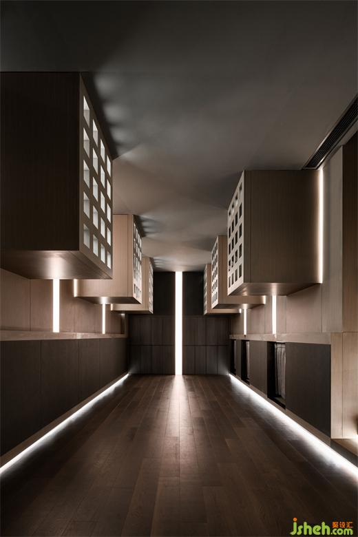 一旦人們進入狹長親切的水區(qū),則立刻能感受到上海里弄街巷的意向。畢竟弄堂始終是上海市民社會的具體呈現,設計師選取這種空間結構和比例,抽象地還原舊上海的精神。