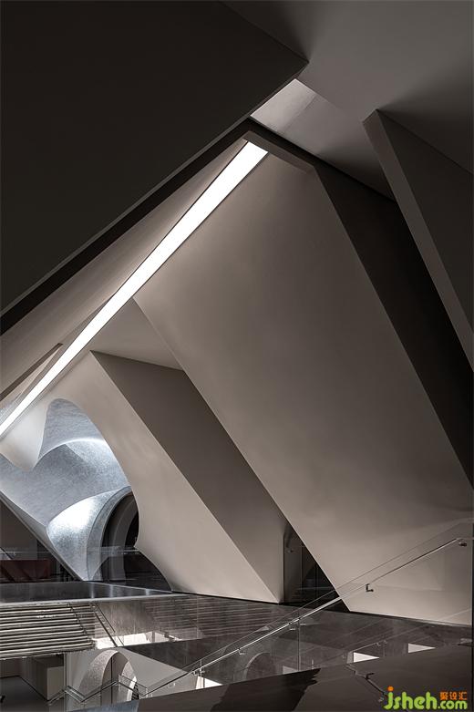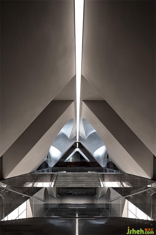 幾何結(jié)構(gòu)和光影交織出帶有哲思的冥想空間。當(dāng)代與古老、現(xiàn)實與虛幻、過去與未來此刻交融??臻g不僅是物理的存在,更是精神的凈土。無形的力量在涌動,孕育著新的希望與生機。