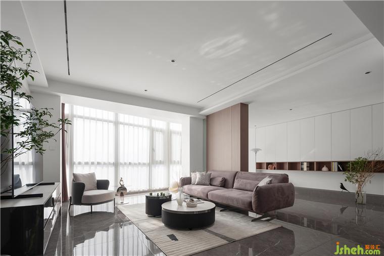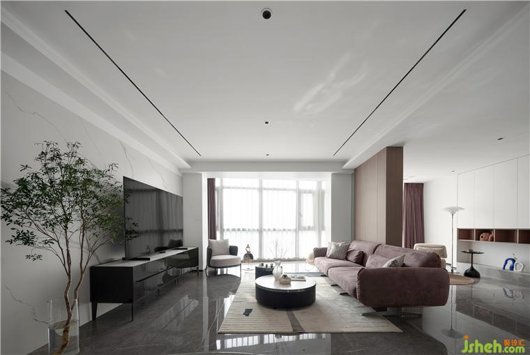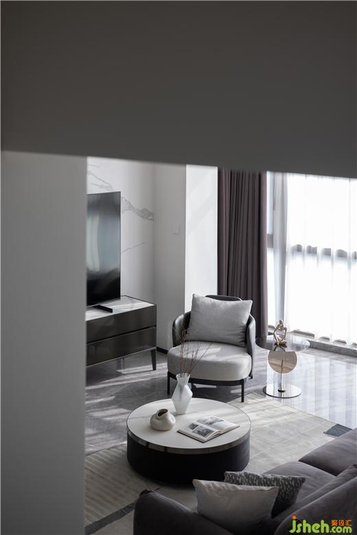 客廳最大的亮點(diǎn)是長(zhǎng)8m的大落地窗,復(fù)式裝修設(shè)計(jì)采光極好四季變換的信號(hào)總是能第一時(shí)間傳達(dá)到這里。家具擺放落落大方、有趣、有品位 , 點(diǎn)到即止,從而浪漫、溫馨且不失時(shí)尚感。極盡克制地使用點(diǎn)光源與綠植點(diǎn)綴其間,以設(shè)計(jì)語(yǔ)言的多樣性展現(xiàn)出業(yè)主獨(dú)特的生活美學(xué)。
