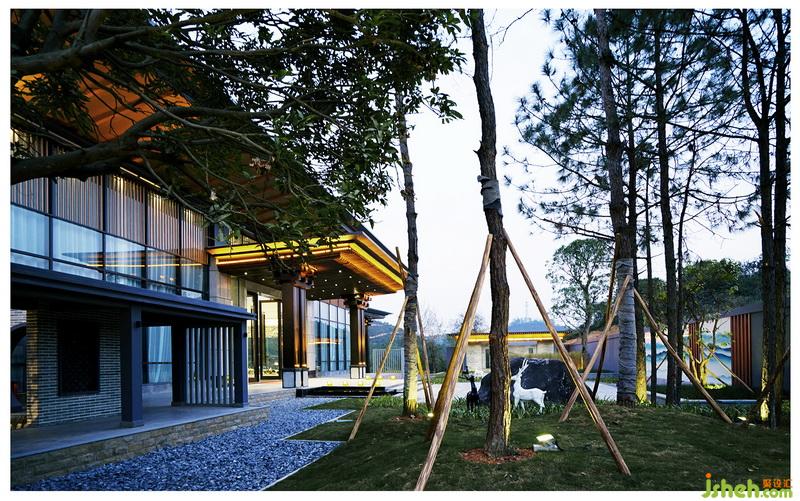 本項目通過對傳統(tǒng)中式庭院的深入研究,結(jié)合現(xiàn)代手法提煉造型元素,同時注入休閑元素調(diào)和中式建筑的嚴(yán)肅氛圍。利用大面積落地玻璃,銷售大廳將周邊山水風(fēng)光收入眼簾,最天然的帷幕,最緊密的交互,山林湖泊,蟲鳴鳥叫,將是生活的一部分。