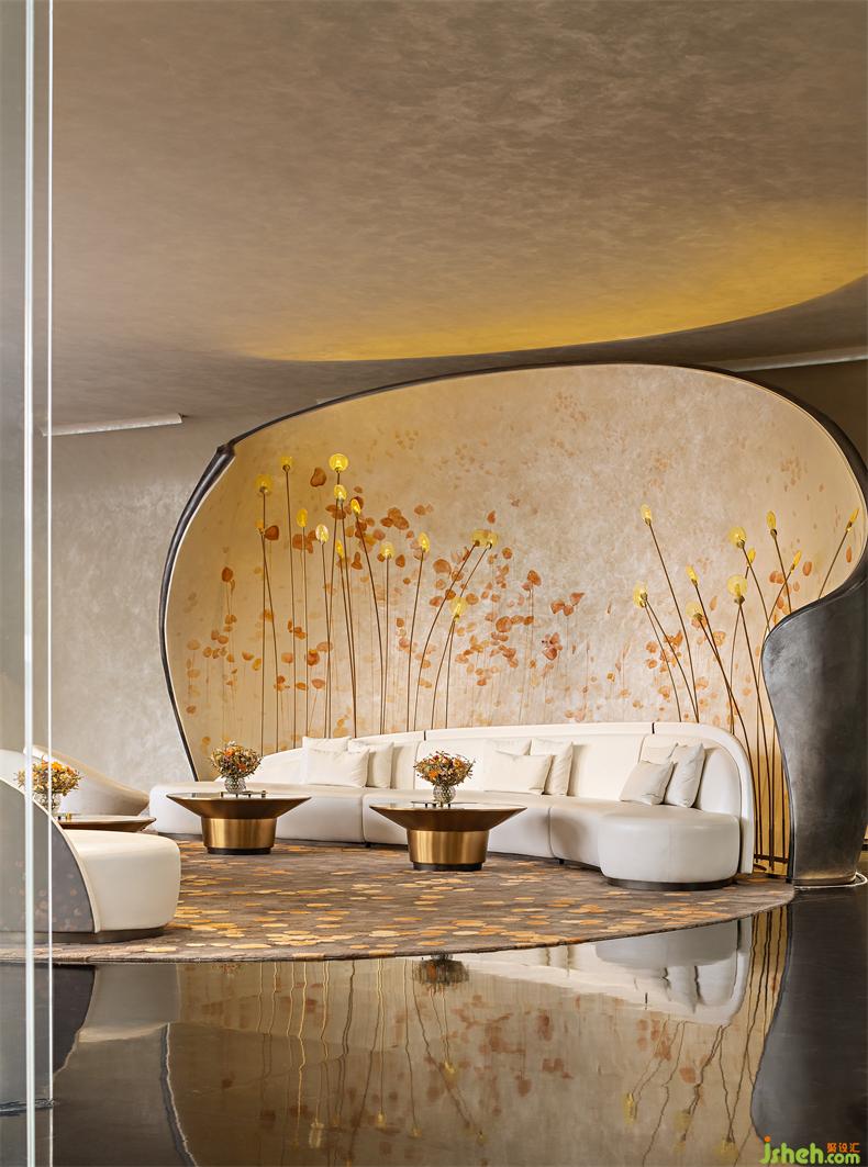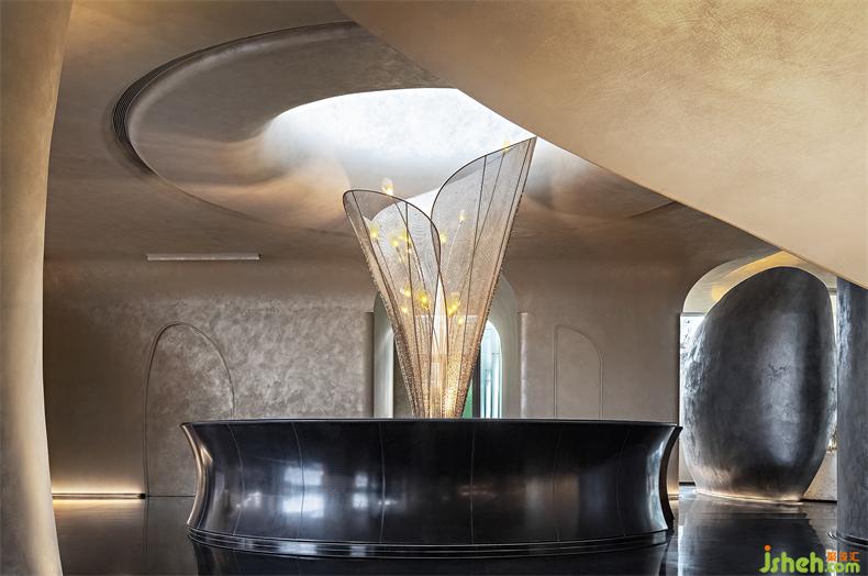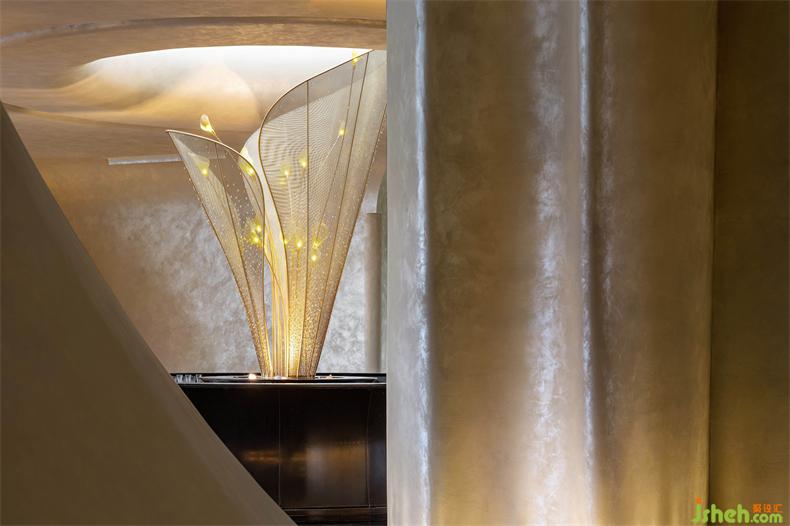 水吧中心的藝術(shù)裝置納光之形,幻化成一朵向上盛開的花瓣,室內(nèi)設(shè)計(jì)師從空中舒展開來,用一朵花開的時(shí)間,點(diǎn)亮陰影下,生命的那一簇可能性。
