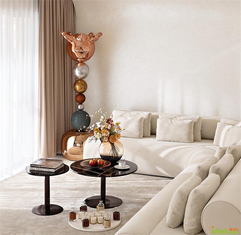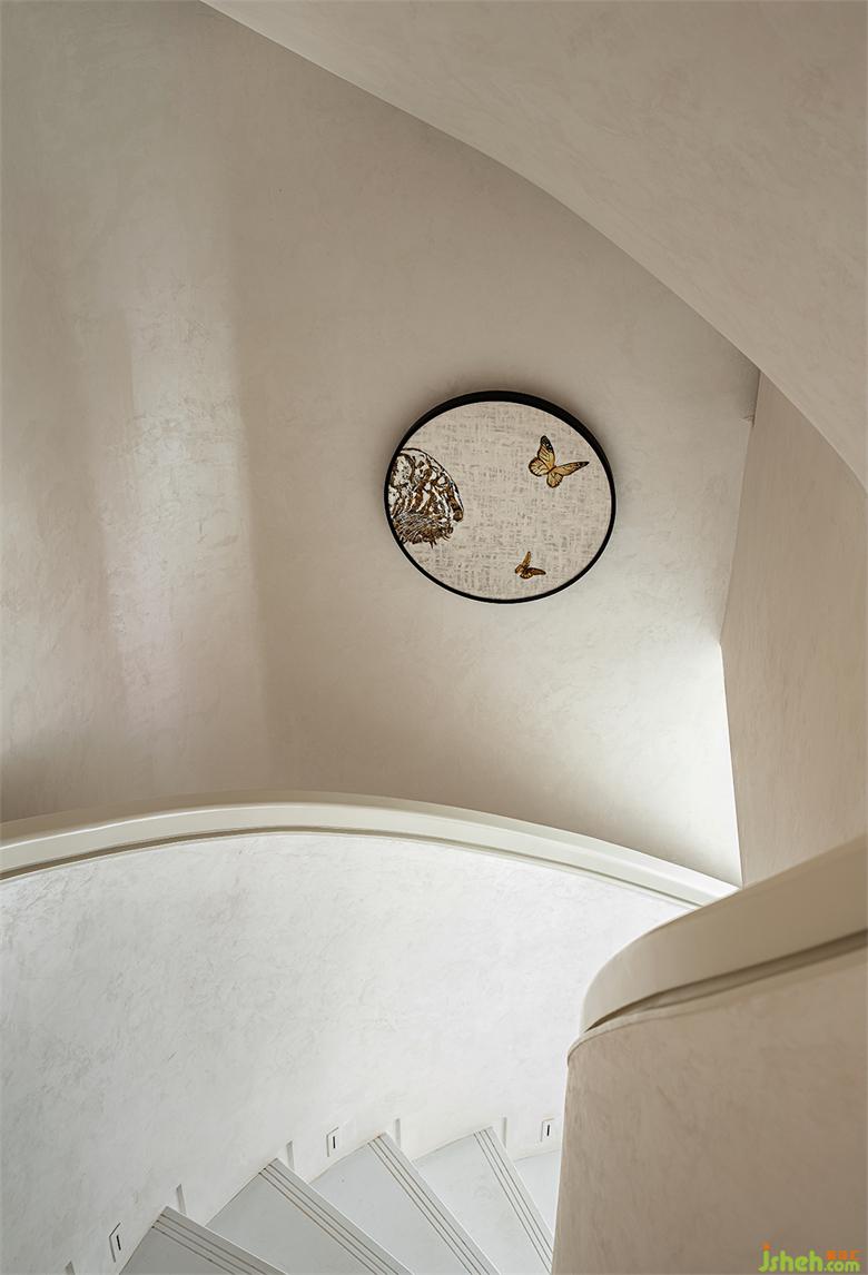 “虎與蝶”的裝飾畫植入了整個會客廳的不同區(qū)域,包括各個走廊,圓形畫框呼應廊道弧線,廊道蜿蜒而下,像一張卷曲的畫卷。南寧別墅裝飾空間在光影的變幻下,靈動而飄逸,美感與靈性帶來的滋養(yǎng),讓精神層面的憧憬,成為了可落地的棲居場景。