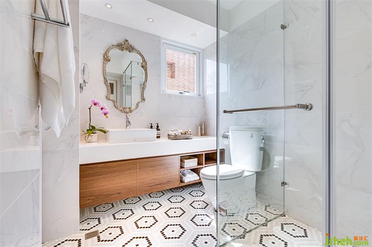 5. 浴室采用黑白馬賽克,拼湊成六角磚的地面造型,更是意味著優(yōu)雅從容的法式態(tài)度。浴室采用黑白馬賽克,家裝設(shè)計(jì)拼湊成六角磚的地面造型,更是意味著優(yōu)雅從容的法式態(tài)度。