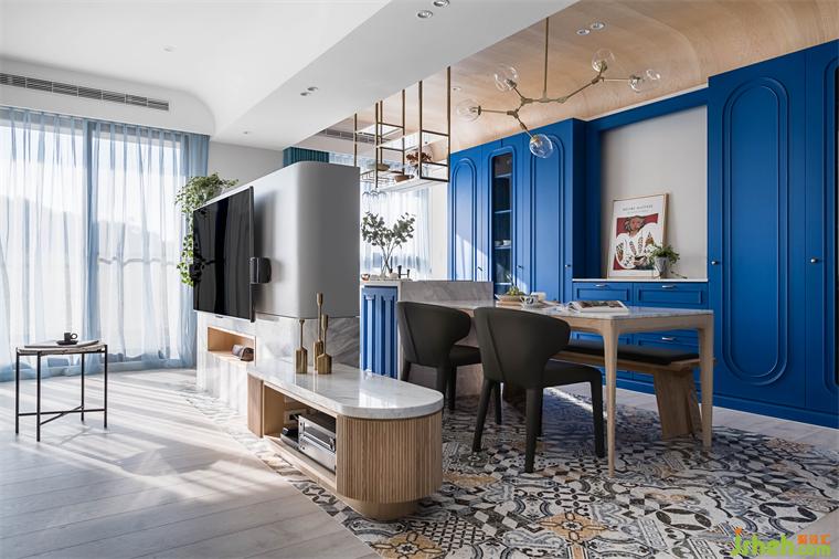 本案大平層設(shè)計(jì)原為31坪的新成屋公寓,房型為雙面采光, 其中一面采光為大片落地窗,不僅可眺望遠(yuǎn)方山區(qū),自然光也被大量的引進(jìn),形成得天獨(dú)后的日光宅。由于屋主夫妻在交屋不久前才剛從西班牙南部旅游回來,對(duì)于室內(nèi)風(fēng)格的營造,有著獨(dú)到的想法,加上女屋主本身就鐘情于藍(lán)色調(diào),更希望設(shè)計(jì)師能夠?qū)⑺麄儗?duì)西班牙南部和摩洛哥獨(dú)有的地中海藍(lán)調(diào)帶入到他們的新屋,讓他們回到家彷彿是來到兩人在渡假時(shí)的美好時(shí)光。西班牙南部的建筑設(shè)計(jì)與其多元的文化有著很明顯的關(guān)聯(lián)性,基督文化和回教文化的碰撞更給西班牙藝術(shù)帶上了奇異的色彩,而且他們天生就有一種熱情奔放和狂野的個(gè)性,在設(shè)計(jì)上就反映出詩意的,幻想的,神話的風(fēng)格,往往充滿了豐富的想象力和浪漫情懷。
