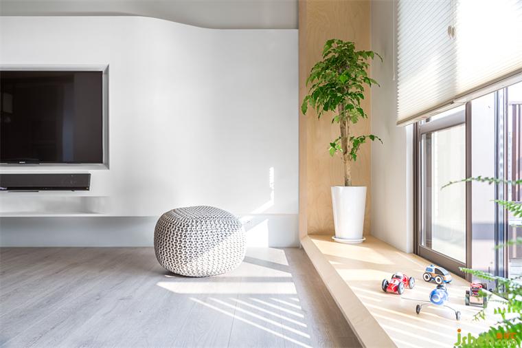 來(lái)到客廳后方原有客房,設(shè)計(jì)團(tuán)隊(duì)將部分墻面拆除,改以透光門片代替。業(yè)主在廚房備餐的時(shí)候,視覺(jué)可以穿透到開(kāi)放的客廳與游戲房空間,以確保孩童的安全。游戲室一面?zhèn)葔υO(shè)有整面的收納柜,柜體下方留有開(kāi)放層板,將孩童喜愛(ài)的玩具箱放置于適合他們身高的位置,方便他們學(xué)習(xí)自行收納的好習(xí)慣。游戲房另一側(cè)墻面則是配置上柜,下方可以放置活動(dòng)書(shū)桌,將來(lái)可輕易變化成孩童們的書(shū)房,必要時(shí)也能將兩側(cè)滑門關(guān)上,幫助孩童專心于課業(yè)。彈性的調(diào)配空間,使游戲房可以跟隨小主人一同成長(zhǎng)進(jìn)化,比起設(shè)于固定單一使用客房更利于其使用價(jià)值。