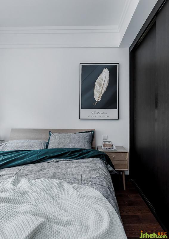 ▲次臥我們?nèi)ケ磉_(dá)這個(gè)空間的偏好,以簡(jiǎn)約墨綠的色調(diào)搭配深色的原始柜門,張弛有度,又不會(huì)用力過猛。