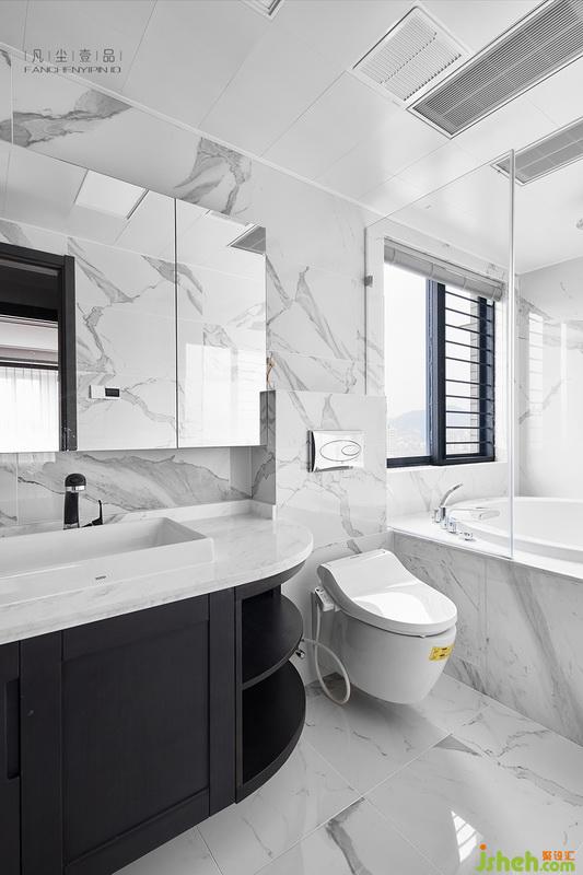 大水墨紋瓷磚、不管搭配深色木質(zhì)或淺色木質(zhì),都能很好的融合在一起,而功能型的設計也不可或缺,鏡柜+衛(wèi)生間水空調(diào)+人性化置物架讓生活細節(jié)處彰顯便利。