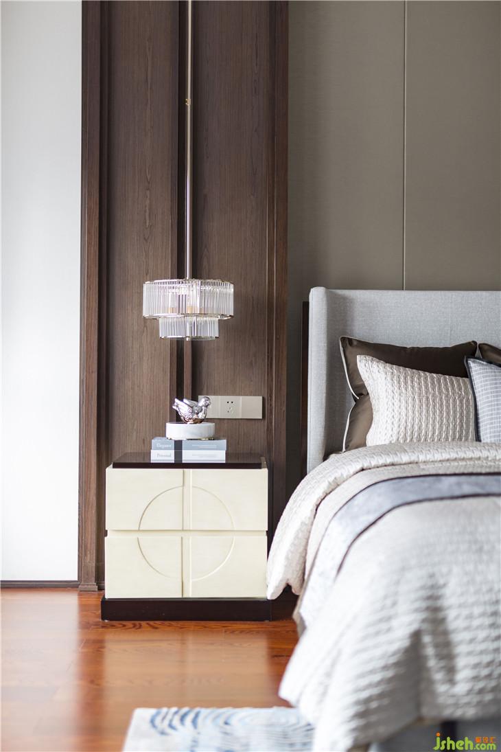主臥套房設(shè)計(jì)整體呈現(xiàn)出雅澹明潔的視覺風(fēng)貌,棕色的胡桃木飾面,細(xì)節(jié)處糅合著玫瑰金不銹鋼,格調(diào)優(yōu)雅,內(nèi)斂自然。中式鑲花裝飾柜,自然云紋地毯,點(diǎn)染著傳統(tǒng)文化的精妙筆觸。盈盈自然光透過白色的紗簾,為空間帶來一種安靜祥和的氛圍。主臥衛(wèi)生間同樣散發(fā)出素雅寧?kù)o的氣質(zhì),一幅中式屏風(fēng),花鳥寫意之間,自然靈韻悄然而出。