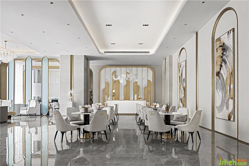 邊緣鑲嵌香檳色金屬條,提升了細節(jié)的精致感,輕薄飄逸的“云朵”意形墻面裝飾,予人無限的想象,全維度促進成都人對生活的熱愛和向往。室內(nèi)設計師