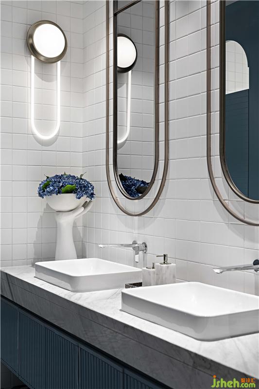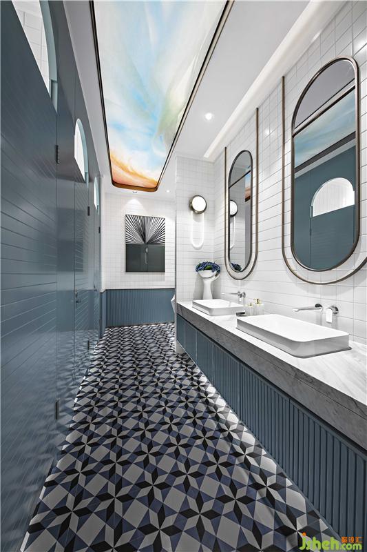 洗手間的折線運(yùn)用達(dá)至高潮,直線、曲線、幾何體...各種形態(tài)的線條共處一室,以線、面、體的綜合形式進(jìn)行空間形態(tài)的表達(dá),從平面到立體自然轉(zhuǎn)化。大面積的純色色塊制造一種強(qiáng)烈的心理震撼力,營(yíng)造張揚(yáng)有力、現(xiàn)代時(shí)尚的空間意境。