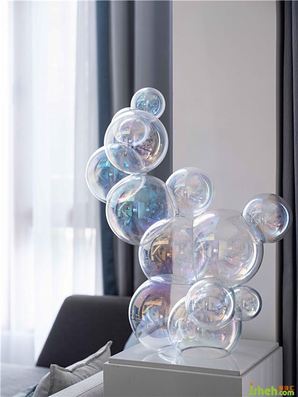 精致的高級(jí)灰、清新的藍(lán),搭配手工金屬擺件,透明質(zhì)感的材質(zhì),變化的光線,氤氳一個(gè)輕盈、靈動(dòng)的現(xiàn)代美學(xué)空間。