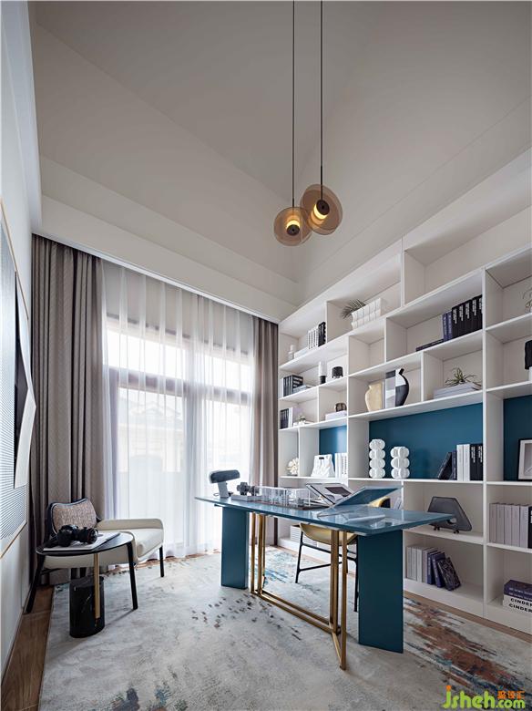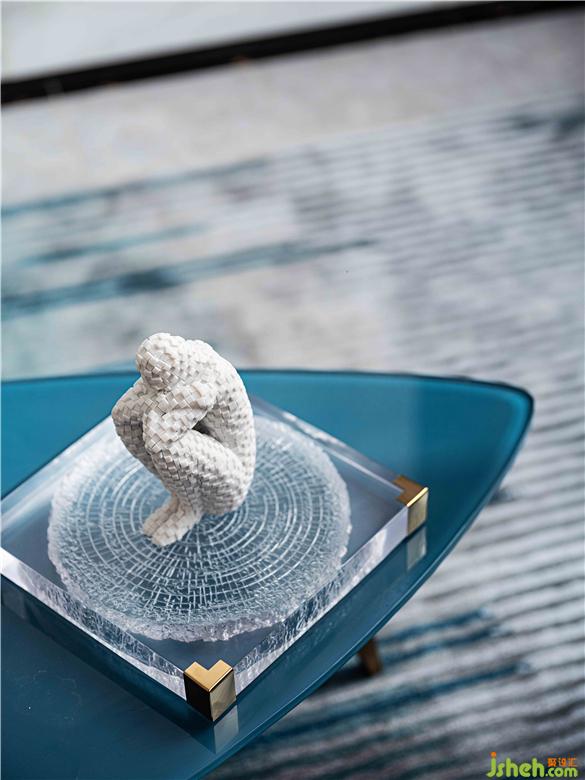 午后的陽光斜斜地照在床上,海水藍、高級灰、理石白三種顏色的交融,呈現(xiàn)現(xiàn)代藝術(shù)的多元與包容。在愜意的午后,一個人,在自己理想的居所里體味理想的虔誠、藝術(shù)的認(rèn)真、情感的切實,全都難能可貴到極點。