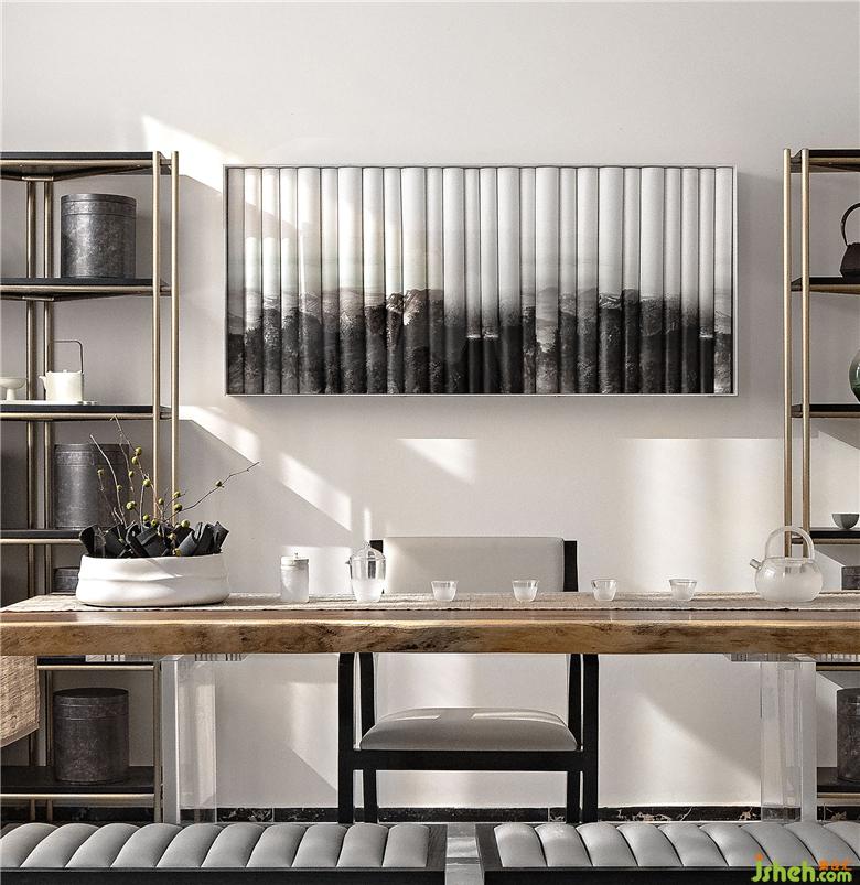 山水的紋理,端莊的色彩,石頭、翡翠等能量元素,空間的氣韻默然流通,透明恬靜而詩(shī)情畫意。