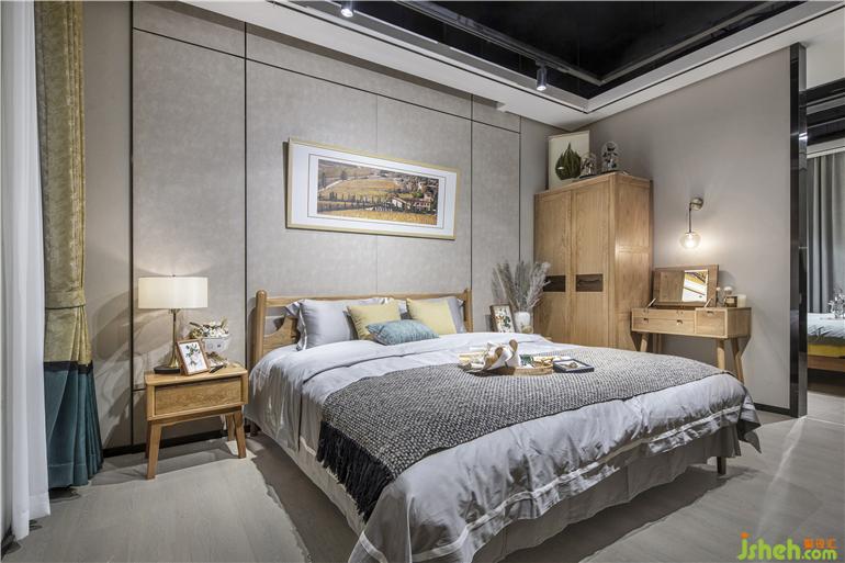 北歐金秋原創(chuàng)藝術(shù)地毯,白、綠、褐色相間,猶如俯瞰無垠的北歐山丘;精致細(xì)膩的設(shè)計(jì)理念鋪陳于空間每一個(gè)角落,展廳設(shè)計(jì)窗簾沿用靜逸的綠色與明朗的瑪雅黃配搭,營(yíng)造清新閑適的田園居住感。北歐金秋主題元素的運(yùn)用既大刀闊斧又細(xì)致入微,沙發(fā)抱枕以簡(jiǎn)潔的幾何造型圖案,配搭整個(gè)套系的主色調(diào)瑪雅黃與翡翠綠,與空間的整體童話意境相得益彰;主臥則包含床、床頭柜及梳妝臺(tái),簡(jiǎn)練質(zhì)樸的線條與原木色調(diào),氤氳靜謐恬淡的生活氛圍,天然的木質(zhì)紋理,觸手可及的自然溫度,打破居所與自然之間的隔閡。