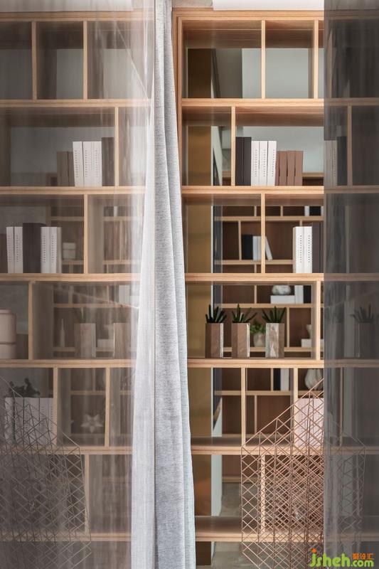 沙盤區(qū)和接待廳原始結(jié)構(gòu)不規(guī)整,其二層處分別為窗體、辦公走廊,空間界線模糊。因而室內(nèi)設(shè)計師以金屬古銅橫向固定木格柵結(jié)構(gòu),序列化挑空區(qū)域,隔而不斷,形成一種空間透明性,又達(dá)到虛實相間的效果。平衡對稱的布局銜接大廳和沙盤區(qū),現(xiàn)代與傳統(tǒng)和諧交匯。忠于空間本質(zhì)功能,沙盤模型在這里最直觀的展示。