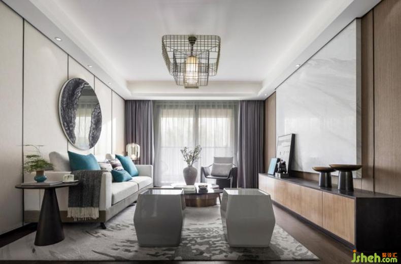 入戶便可感受中式對稱嚴謹布局,圍合式吊頂框出各功能分區(qū),視線隨著過道延伸而去,恬然閑適正是其最美好的模樣。