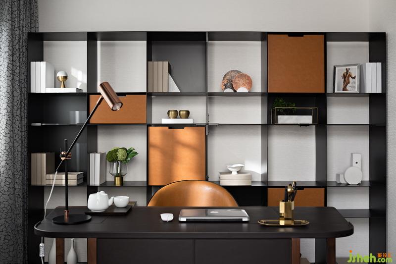 書架以虛實結(jié)合的體塊感呈現(xiàn),疏密不一,相異的色調(diào)在橫縱間碰撞交錯,演繹靈動隨性之美,讓收納和展示一舉兩得,同時豐富了空間機能。踱入書房,這一隅是閱讀、辦公最好的場所。