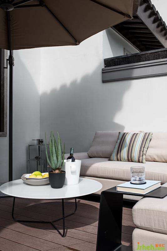 露臺即世界,心中有田園。書房與粉墻黛瓦下,涼風(fēng)拂面,調(diào)和一股閑適悠然的度假氛圍。