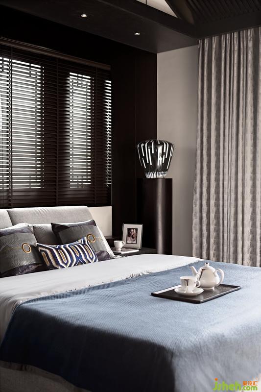 二樓次臥室內(nèi)設(shè)計師在陳設(shè)形式上摒棄了繁冗復(fù)雜的技巧,家私造型以簡潔硬朗的線條為主。汽車元素與皮質(zhì)、金屬、石材等碰撞,輔以藍色系修飾,增添了幾絲柔和,讓生活跟質(zhì)感達到完美平衡。