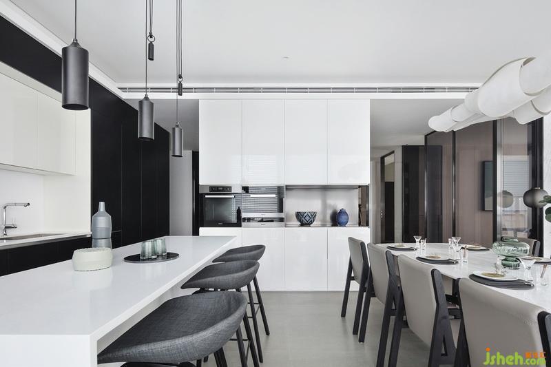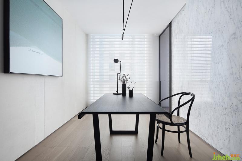 室內(nèi)設(shè)計(jì)師提取烤漆材質(zhì)的黑白色反差,從材料、細(xì)部和營(yíng)造方式上窺見(jiàn)輕巧風(fēng)范。