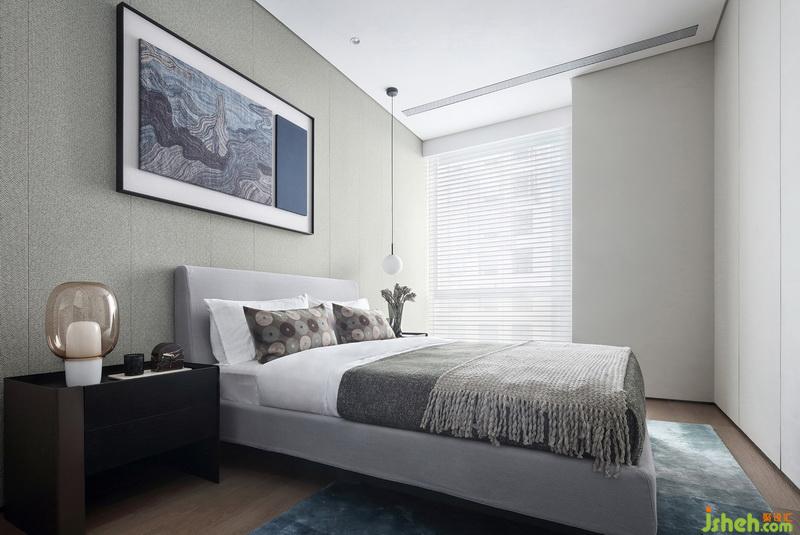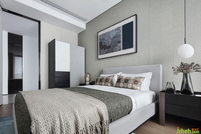 次臥將灰色調(diào)在空間中發(fā)揮到極致,立面上簡(jiǎn)潔線條呈序列對(duì)望,完成靜謐、平和的情緒表達(dá)。