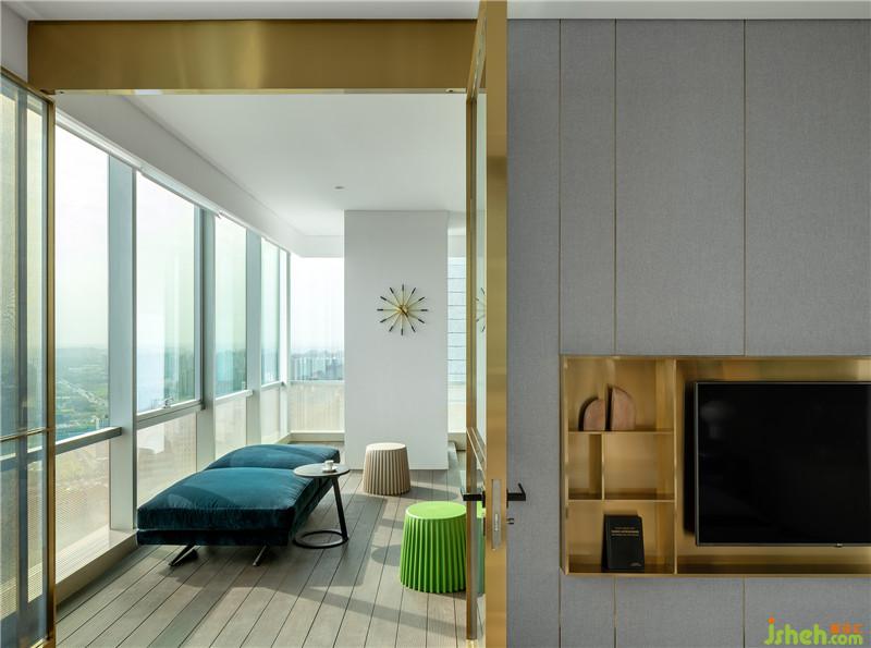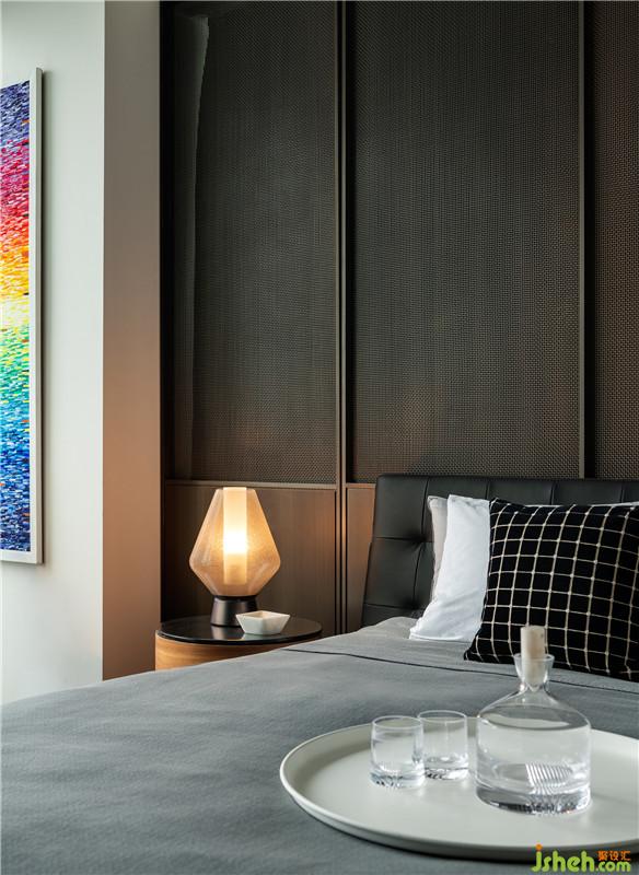 為營(yíng)造極致的居住體驗(yàn),設(shè)計(jì)師頗費(fèi)心思地引入生活儀式感。進(jìn)入主臥套間即是開(kāi)放式衣帽間相迎。主臥背景墻采用特殊定制的金屬網(wǎng),以其深色調(diào)金屬塑造沉穩(wěn)、質(zhì)樸的氣息。內(nèi)部與衣帽間、衛(wèi)浴的界限也得以弱化,賦予居者卓闊的空間享受。