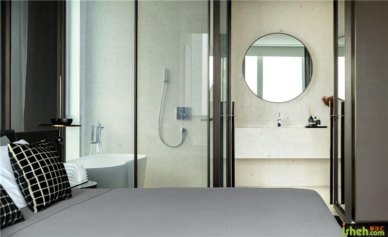 主臥衛(wèi)浴在大片米色鋪呈下,充分釋放出極簡(jiǎn)的美感。圓潤(rùn)的鏡面,更是在體塊棱角中實(shí)現(xiàn)了融合與均衡。