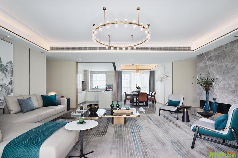 為此室內設計師在用色、選材上大花心思,以沉穩(wěn)睿智的鏡湖藍、知性優(yōu)雅的高級灰,璀璨溫暖的橘棕色與深遠寧靜的叢林綠,形成這座大宅獨特的氣質色彩,渲染一種扣人心弦的華美。