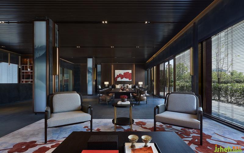 杭州與茶天然有著某種妙不可言的緣分,生活藝術(shù)館內(nèi)茶室與會客區(qū)一體而就。把絕佳位置留給茶室,框取典型的江南風(fēng)光入畫,空間的起伏層次逐步顯出。以山水圖紋的夾絲玻璃嵌入金屬框架弱化原有承重柱體,既是美的展示,又適宜分割。