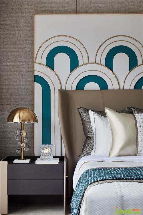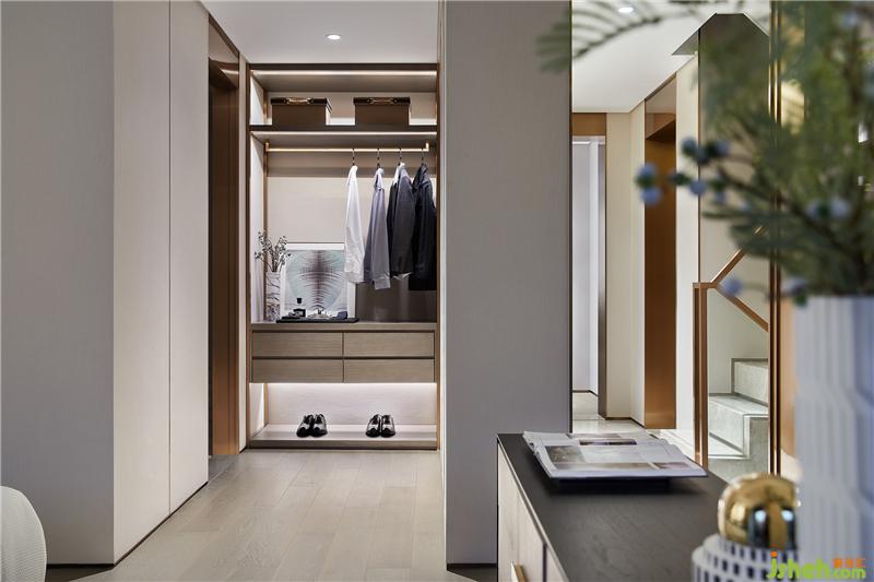 套間一隅設獨立衣帽間,并嵌入燈帶為其添上獨特的情調。這既是空間的合理化利用和居者需求的完善,亦是生活品質的縮影與細節(jié)的極致追求。
