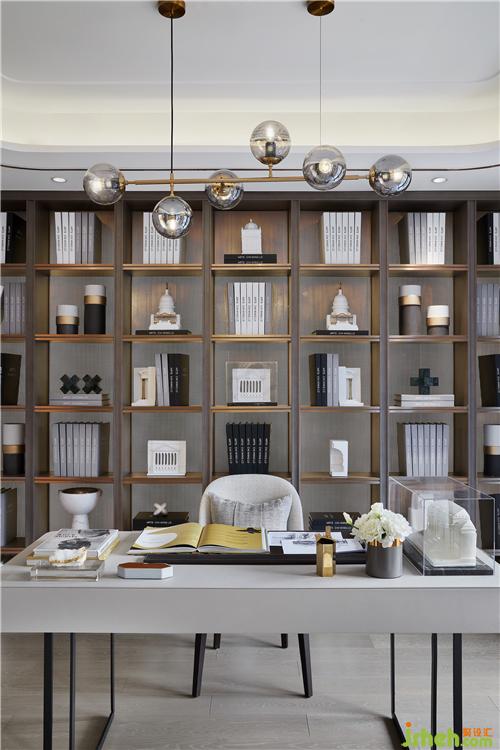 開放式書房與睡眠區(qū)相望,融合了現代人的功用性與審美需求,并予以其更深的自由度與靈活性。多功能書架,在一脈相承的設計理念中,呈現充沛的線條律動,渲染寬廣的精神境域,盡顯高級細致之美。