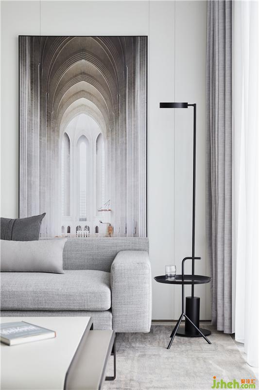 陽光透過窗紗,光線點點落于柔軟布料,這一瞬的客廳仿佛成了永恒。設計師摒棄虛張聲勢,舍了繁華堆砌,去除多余的墻體,借由金屬格柵的虛實效果,連接多個區(qū)域互通對話,簡潔的線條,溫和的色調,安寧地詮釋出靜謐輕奢的格調。