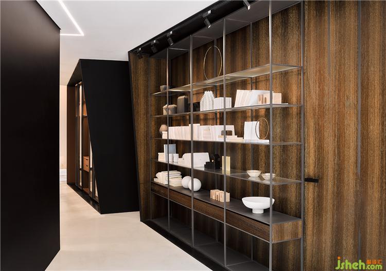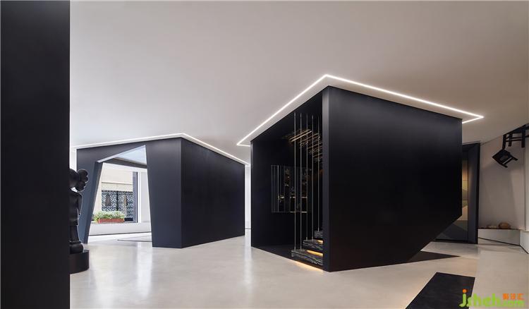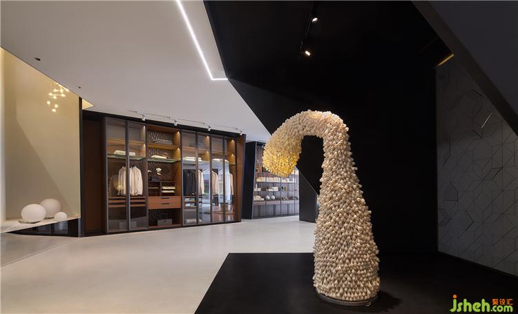 若將整個(gè)場(chǎng)地視為一個(gè)游走的系統(tǒng),錯(cuò)落的體塊與靈巧的切面開(kāi)口讓其平面靈活度更高,視線穿透性更強(qiáng)。在不拘一格的分區(qū)中,每個(gè)系列就像簇?fù)淼奈枧_(tái)主角,自成焦點(diǎn),既凸顯個(gè)性化,裝修又讓每一隅都能邂逅不同的精彩。