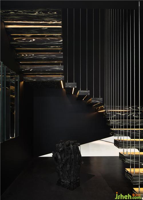 懸挑樓梯以被包裹的姿態(tài)蔓延而上。虛實(shí)相生的光影、連續(xù)的界面?zhèn)鬟f至臻深邃的魅力,停駐的前后視覺(jué)落點(diǎn)也都通過(guò)精心考量。