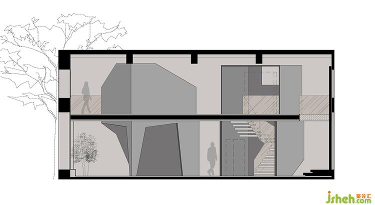 中央的玻璃洞口,在保證安全的前提下弱化護(hù)欄,進(jìn)一步流露輕盈透氣的觀感。俯瞰的目光正好聚焦在一樓中心處,這也是對(duì)上下一體的把握與呼應(yīng)。