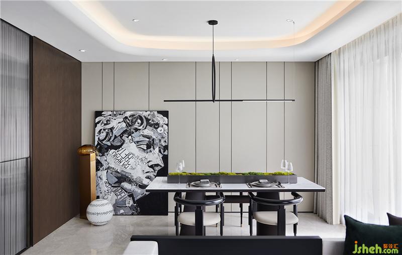 精致的生活離不開餐廳的調(diào)味與補充,而與客廳的開敞互聯(lián)則傳達(dá)出微妙的視覺張力。