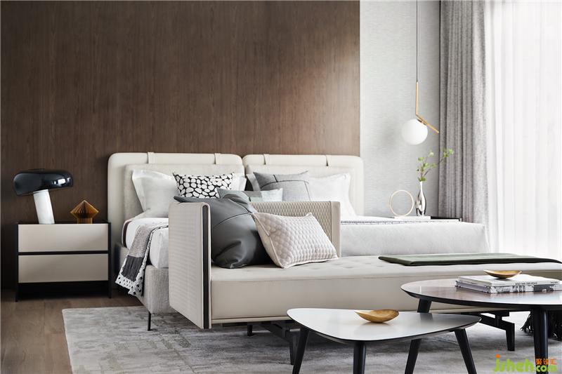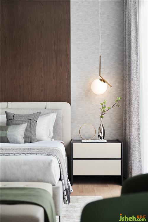 溫潤的木與柔和的米色調(diào)鋪陳主臥睡眠區(qū),散發(fā)出一種雅致溫馨的韻味,藉由皮革、布藝與木質(zhì)自如融合,予人安心怡然之感。復式裝修設計