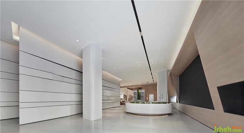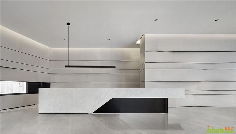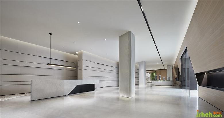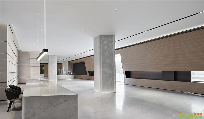 昆承湖宛如明鏡一般鑲嵌在這片美麗富饒的虞城土地上,包容的湖水滋養(yǎng)出這座城市的旺盛生命力。售樓處設計墻面上橫貫蔓延的折線與體塊,更具顯著的流動感與指向性,奔涌向前且活力不息,這在某種程度上也是對水的提取與自如運用。