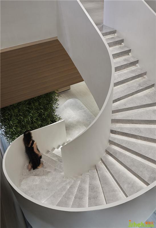 旋轉樓梯優(yōu)美雅致,帶來一股柔和的張力,既拓展了層次關系,又給訪客帶來視角上的多重轉變。