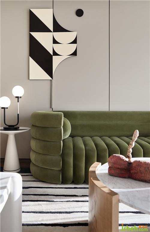 區(qū)別于以往的會(huì)客模式,當(dāng)代客廳更加注重人的情感接收與表達(dá)??蛷d避開(kāi)了方正轉(zhuǎn)角,采用包裹狀的、動(dòng)態(tài)的陳設(shè),以一種隨性的維度詮釋別樣的體驗(yàn)與愉悅。