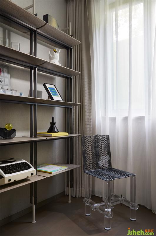 藝術(shù)源于生活,高于生活,最終又歸于生活。樣板間設(shè)計(jì)書房宛如藏寶閣,承載著家庭成員的喜好與興趣,各式珍藏單品置身其中,希望讓彼此獨(dú)具一格的審美與創(chuàng)意皆能盡情揮灑。