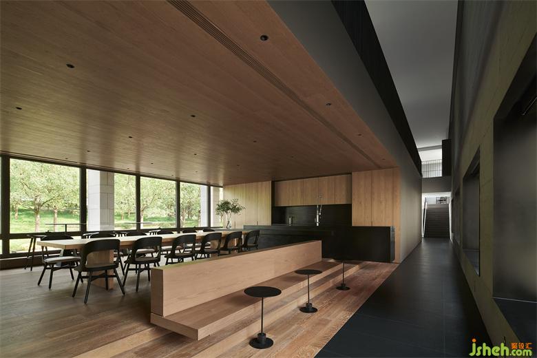 辦公室設(shè)計(jì)挑空處通道,仿若悠長(zhǎng)的小巷。循步深入,餐廳予以木質(zhì)包裹出靜謐之感,多元的落座形式,高低錯(cuò)落的關(guān)系勾勒輕松的氣氛。