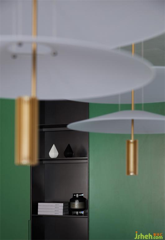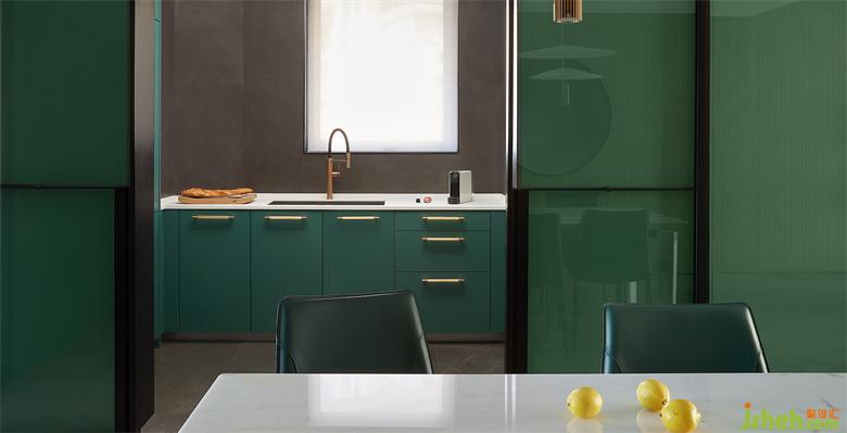 雙開式推拉移門形成隔斷,綠色則繼續(xù)向廚房內(nèi)部延伸,在大片透明玻璃的映襯下,開放度、整體性與互動(dòng)性于此展現(xiàn)。