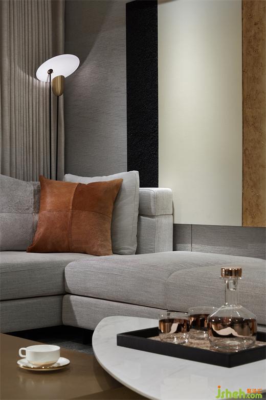 作為客廳向外的延伸,陽臺精巧與閑適并存。南京樣板間設(shè)計(jì)多功能柜體與發(fā)光裝置默契搭配,儼然化身一派迷你吧景象,或推杯換盞,或自省獨(dú)思,一舉卸下滿身的疲憊。