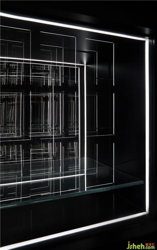 鐵板燒餐廳設(shè)計逐光而行,展示中庭巧用線條、比例,兩側(cè)置以透明格架對稱而立,延伸至頂部的不銹鋼鏡面與燈帶的多維交織,似乎令這一領(lǐng)域無限擴(kuò)容,酷炫非凡。