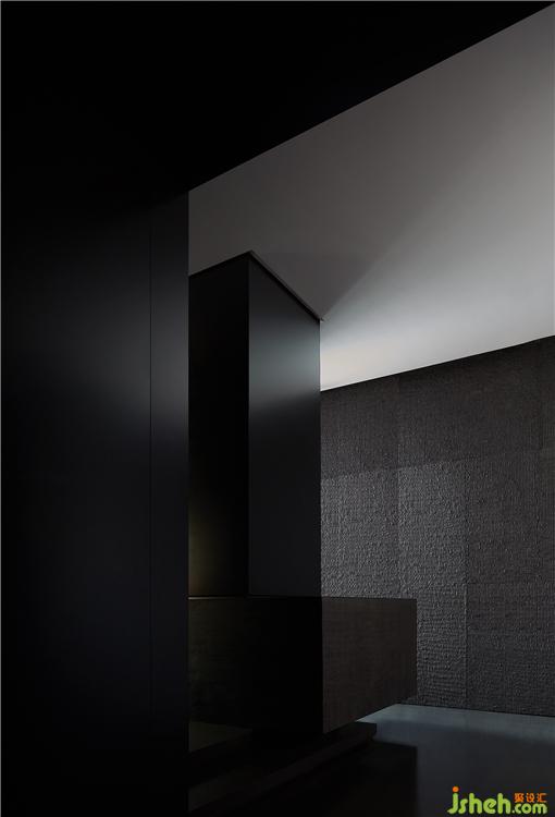 門廊處以大塊面純粹的用材與用色鋪就,硬朗凌厲的勾勒出酷黑基底。立面則貫徹極簡與解構(gòu)概念,引入框景、造景及構(gòu)成語言,鐵板燒餐廳設(shè)計并謹(jǐn)慎把控內(nèi)外界的銜接尺度,造就高辨識度的個性形象,恰如“屏”的形式,濾掉周遭喧囂,欲拒還迎,邀人入內(nèi)。