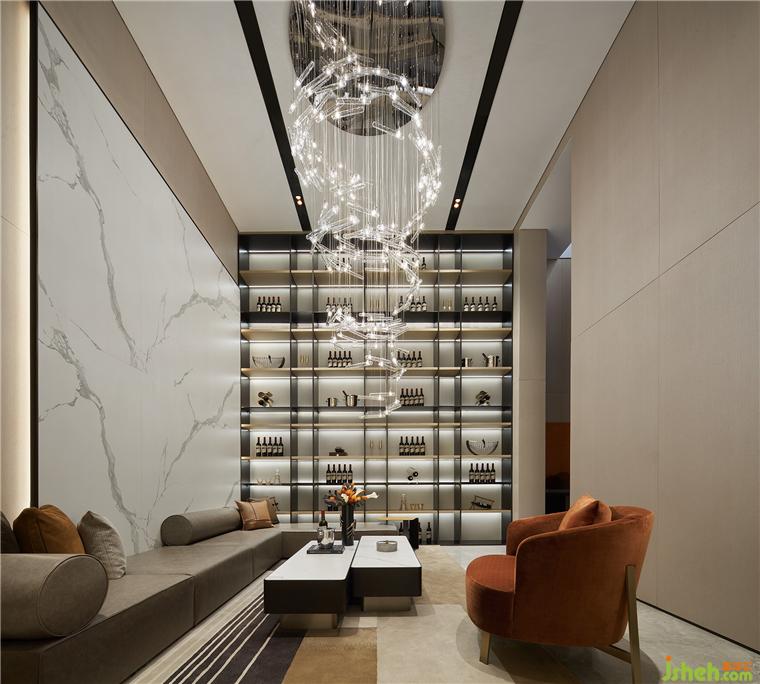 在挑高達(dá)4.9米、擁有開闊空間廓形的地下室,依托建筑結(jié)構(gòu)來延展設(shè)計語言,樣板間設(shè)計以大方且實用作為出發(fā)點,匯聚會客、社交、娛樂、品酒、閱讀場景,滿足現(xiàn)代都市人的多維需求,迸發(fā)著無限的活力。