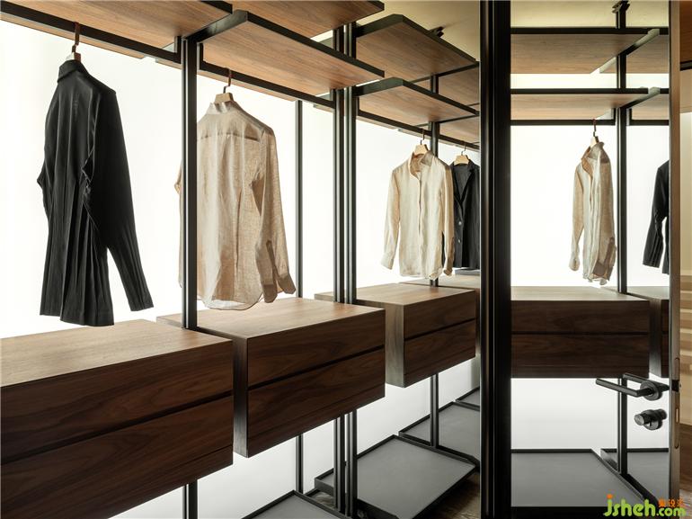 步入式衣帽間開(kāi)放的格局、完善的分區(qū)、利落的構(gòu)造一目了然。疊墅設(shè)計(jì)引入鏡象手法,令這一場(chǎng)域擴(kuò)容,一鏡之隔使其相映成趣,也折射出無(wú)限遐想。