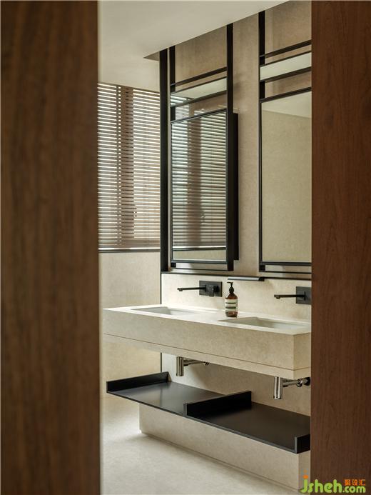 衛(wèi)浴空間以臺(tái)盆鏡柜充當(dāng)樞紐向外圍發(fā)散,調(diào)動(dòng)多維感觀,給予便捷呵護(hù)。疊墅設(shè)計(jì)在光線引入和氛圍營(yíng)造上也細(xì)致規(guī)劃,浴缸臨窗而設(shè),內(nèi)外交融對(duì)話,讓沐浴變得更加愜意與趣味。