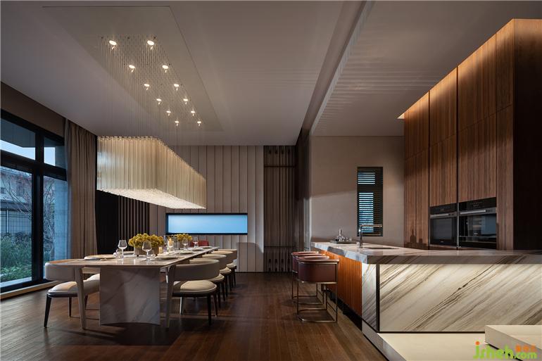 常州天安別墅設(shè)計以融洽的存在,表達(dá)靜謐自由的本色。將木盒子渾然嵌入,中廚于內(nèi)、西廚于外,這包含著對每一寸空間的周全應(yīng)用,也是對功能需求的完善與補(bǔ)充。